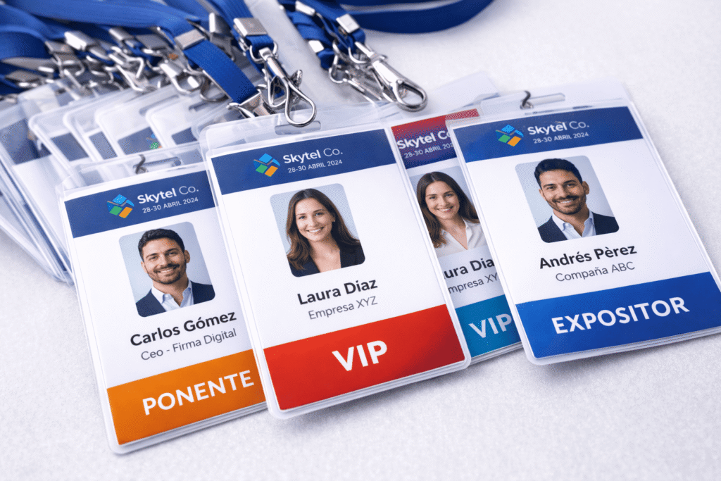 Fabricamos escarapelas personalizadas que identifican, organizan y elevan la experiencia de tu evento.
